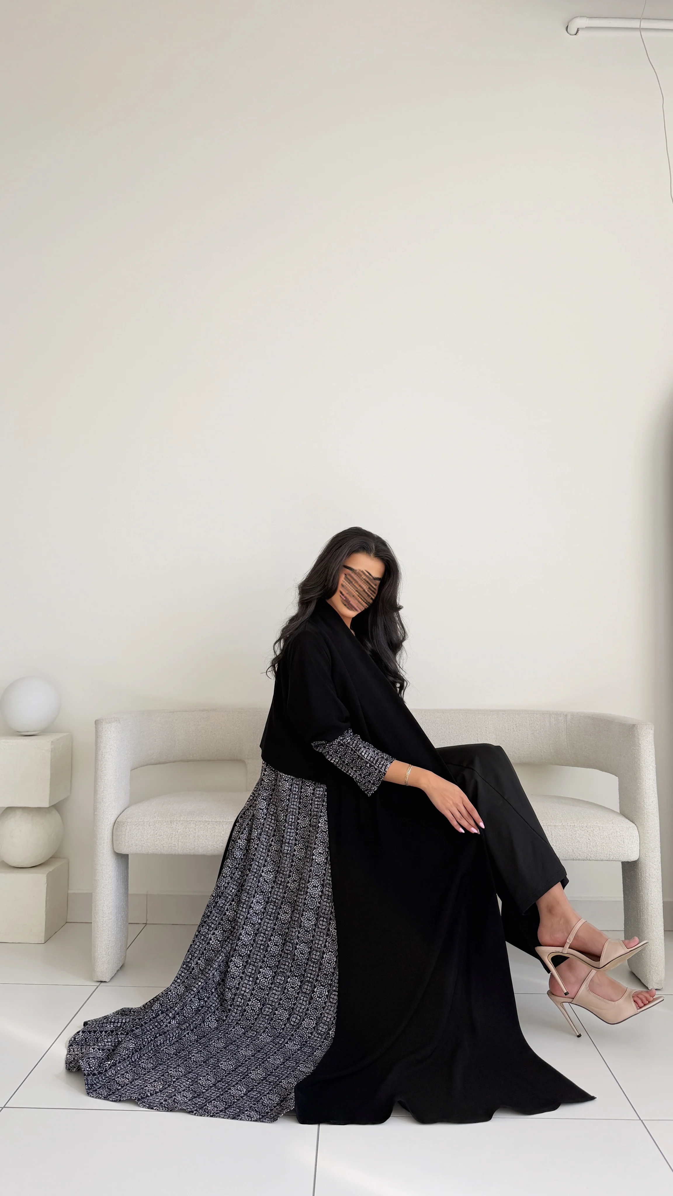 MWT797 - عبايه اسود بتطريز ابيض واسود